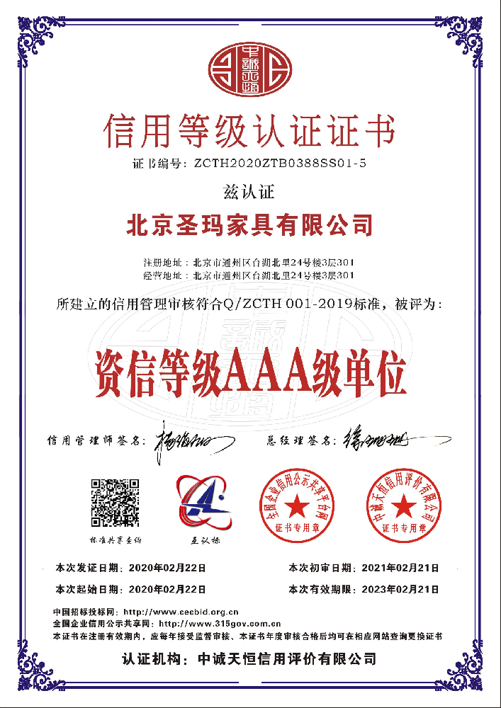 北京圣瑪家具有限公司是以設計研發、生產、銷售、服務為一體的專業化辦公家具制 造企業;主要經營辦公家具、校園家具、實驗室家具、酒店套房、全屋定制類等家具。 公司成立于 2017 年,生產基地位于天津市蘆臺經濟開發區華澳盛世家具有限公司院 內,占地面積約 10000 平米,擁有員工 100 人左右,其中高級技術人員達 15%以上。 公司采用了南興、先達系列等先進生產設備,建立專業流水線,具備先進的生產及加 工能力。公司設有專業的產品設計部、運營部、質檢部等,提供專業的 CAD 平面圖、立面 圖級效果設計圖紙。 使用優質的進口原材料及配件;嚴把進貨渠道,所用材料符合國家環保標準要求。款 式上依據人體工程學原理,追求多樣化的設計風格。按照 “ISO900/ISO14001 族標準” 的 要求,嚴格控制每一個環節。 并本著“以質量求發展,向管理要效益,顧客滿意為焦點,持續改進,共筑偉業”的 宗旨方